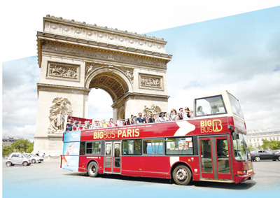 | 在法國巴黎,一輛觀光巴士經(jīng)過凱旋門。 |
