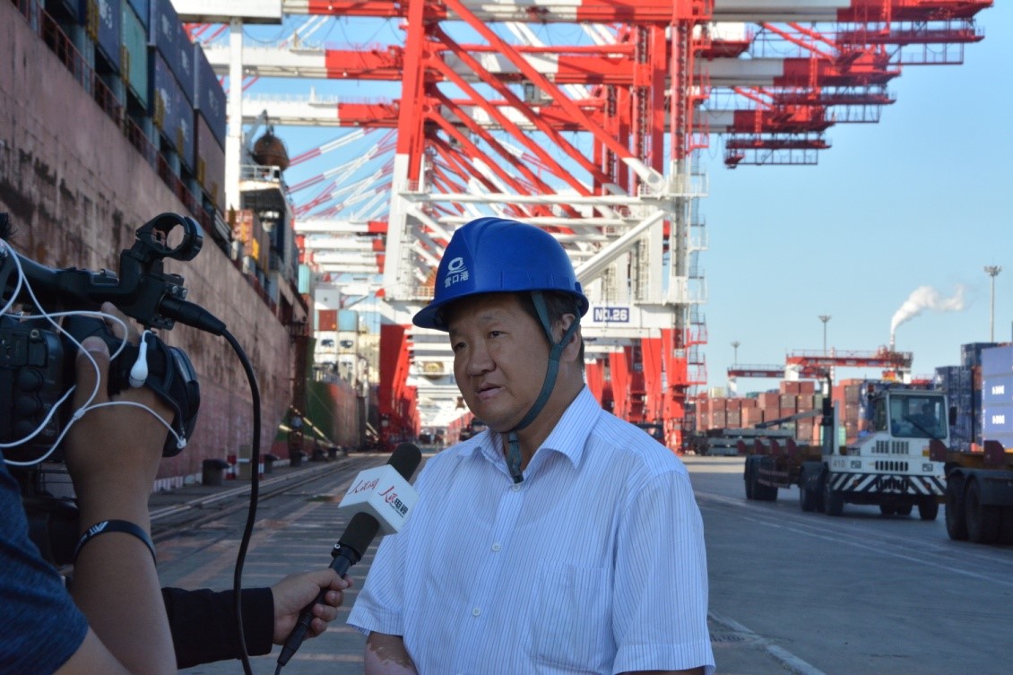 營口港務(wù)集團工會副主席李昆接受采訪。 何淼攝
