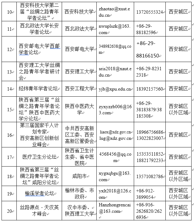 進(jìn)一步咨詢,可發(fā)郵件或致電各分論壇,聯(lián)系方式見附表。