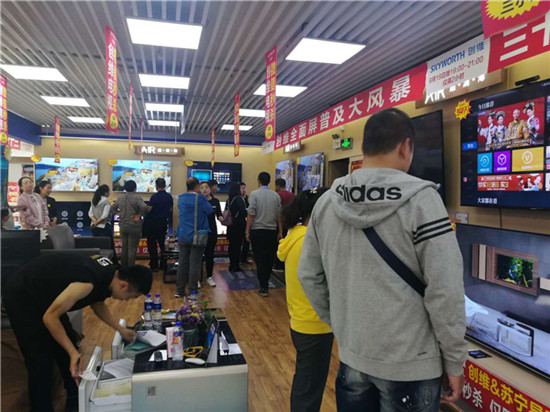 消費升級趨勢下,越來越多的消費者傾向于購買提升品質(zhì)生活的家電產(chǎn)品。而彩電作為客廳娛樂的重頭戲,表現(xiàn)尤其明顯。代表未來顯示技術(shù)的OLED電視,QLED量子點電視在這個國慶,都受到了消費者的熱烈追捧。上海蘇寧五角廣場店開出了一筆超28萬元的彩電大單,客戶顧先生一口氣買下了188888元的創(chuàng)維百吋電視100G9、39999元的創(chuàng)維OLED電視65W8、11999元的創(chuàng)維OLED電視55S8A及創(chuàng)維43Q3A共計四臺電視。青島香港中路店則售出了售價99999元的索尼OLED電視77A1。tHR安康新聞網(wǎng)