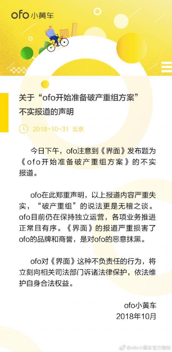 ofo開(kāi)始準(zhǔn)備破產(chǎn)重組方案?,官方回應(yīng):無(wú)稽之談