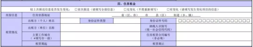 住房租金一欄中,住房坐落地址需填寫納稅人租賃房屋的詳細地址,具體到樓門號。