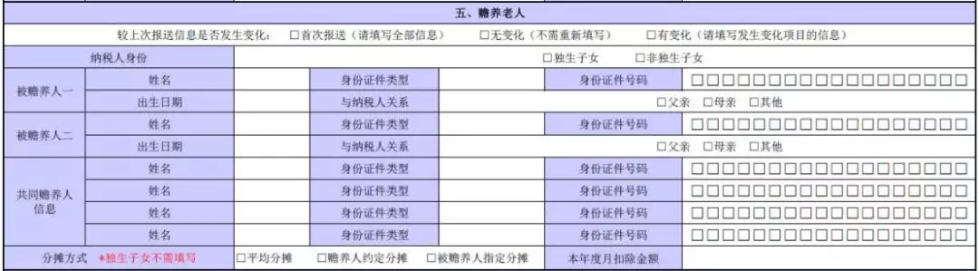 贍養(yǎng)老人一欄中,共同贍養(yǎng)人填寫時注意,納稅人為非獨生子女時填寫本欄,獨生子女無須填寫。