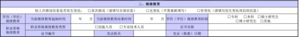 繼續(xù)教育一欄中,除了基本信息的填寫,同樣是在有方格的地方進行對應(yīng)框內(nèi)打“√”。