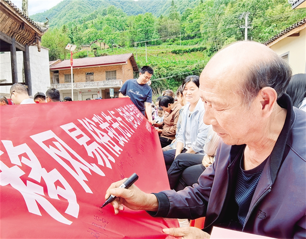 近日,漢濱區(qū)葉坪鎮(zhèn)在慶祝中國共產(chǎn)黨成立104周年活動現(xiàn)場,開展“移風易俗我先行 拒絕升學宴請風”簽名和宣講活動。 胡子新 攝i2e安康新聞網(wǎng)