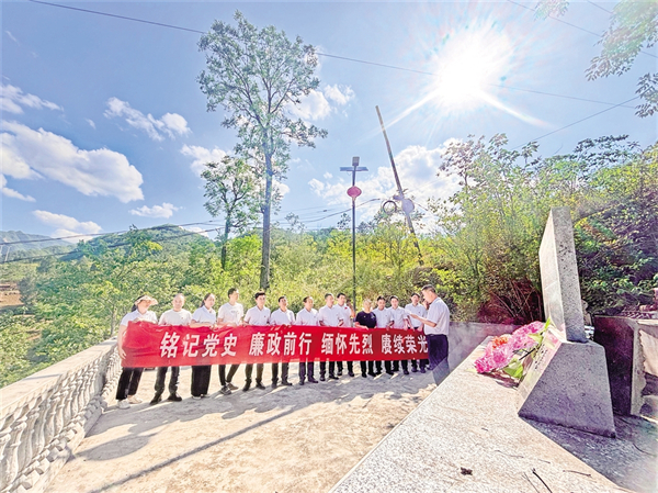 6月26日,旬陽市趙灣初中黨支部組織開展以“銘記黨史 廉政前行 緬懷先烈 賡續(xù)榮光”為主題的“七一”主題黨日活動。袁波 攝i2e安康新聞網(wǎng)