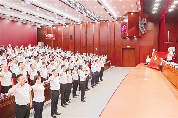 6月29日,漢濱區(qū)農業(yè)農村局全體黨員重溫入黨誓詞,慶祝中國共產(chǎn)黨成立104周年。周濬 攝i2e安康新聞網(wǎng)