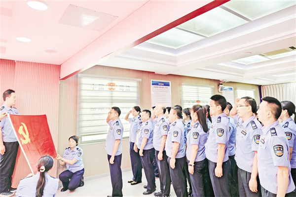 6月26日,紫陽縣司法局組織機關黨支部黨員、局機關及下屬單位干部職工開展“重溫入黨誓詞 汲取奮進力量”主題黨日活動。葉明星 攝i2e安康新聞網(wǎng)