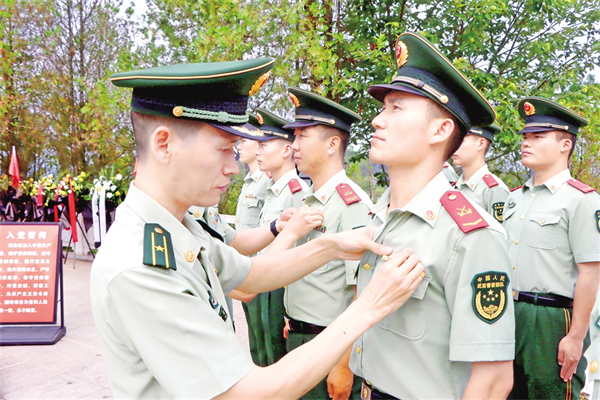 日前,武警安康支隊組織官兵赴平利縣老縣鎮(zhèn)蔣家坪村和牛蹄嶺戰(zhàn)役遺址公園開展形式多樣的主題黨日活動,引導廣大官兵在追尋歷史根脈、接受思想洗禮中堅定“聽黨話、跟黨走”的政治信念。趙坤 陳翔 攝i2e安康新聞網(wǎng)