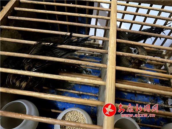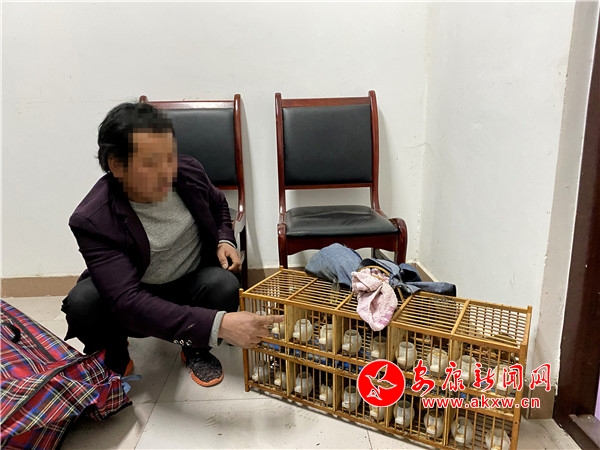 據(jù)了解,1月16日晚上21時30分許,民警馬玉壽在鎮(zhèn)安車站候車室執(zhí)勤時,接到安檢員反饋,一男性旅客攜帶物品疑似有活體鳥類。民警對該男子行李檢查后發(fā)現(xiàn),其包內(nèi)所裝有9只畫眉鳥活體,民警遂將該男子帶回辦案區(qū)進行調(diào)查。