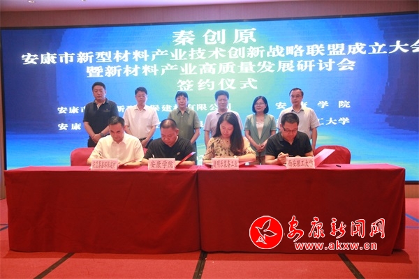 會(huì)上,樊瑛華、孟平共同為安康市新型材料產(chǎn)業(yè)技術(shù)創(chuàng)新戰(zhàn)略聯(lián)盟揭牌,博創(chuàng)宏遠(yuǎn)新材料有限公司董事長、總經(jīng)理趙杰當(dāng)選聯(lián)盟理事長。舉行了校企簽約儀式,簽訂技術(shù)合作協(xié)議5項(xiàng)。西北工業(yè)大學(xué)教授、博士生導(dǎo)師黃英、天津大學(xué)教授、博士生導(dǎo)師江文革分別作了主旨演講。