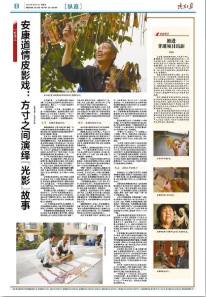 10月31日,《陜西日報》8版“縱覽”欄目就“安康道情皮影”非遺保護項目進行了專題報道,對“安康道情皮影”這一優(yōu)秀地方非物質(zhì)文化遺產(chǎn)項目及漢濱區(qū)在非遺項目保護、傳承方面工作具體做法進行了介紹,受到了社會各界的廣泛關注。今天,我們對報道進行轉發(fā),希望更多的朋友關注、守護我們寶貴的地方非物質(zhì)文化遺產(chǎn),傳承延續(xù)地方文脈和人文精神。