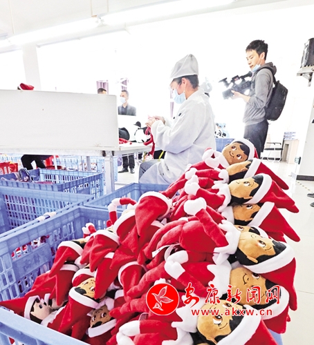 央視記者通過“云直播”的方式,把我市脫貧攻堅(jiān)、移民搬遷、產(chǎn)業(yè)帶動(dòng)、就近就業(yè)、鄉(xiāng)村振興等帶有安康特色的發(fā)展模式,向全國(guó)推介。在生產(chǎn)線上,新偉泰玩具制品有限公司負(fù)責(zé)人龍武向央視記者介紹,在冬奧會(huì)、冬殘奧會(huì)期間,吉祥物官方售價(jià)一只在100元人民幣左右。代加工一只,收益2元人民幣。目前接到吉祥物訂單97000只,他們每天能生產(chǎn)7000只。