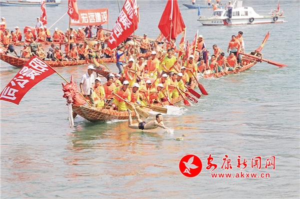 2017年,第十七屆安康龍舟節(jié)開(kāi)幕式上的傳統(tǒng)項(xiàng)目“搶鴨子”。張喬 攝