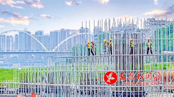 國道211安康關(guān)廟至黃洋河(環(huán)城干道東段)改建工程是我市“十四五”規(guī)劃重點(diǎn)項(xiàng)目。其中新關(guān)廟漢江大橋已于2022年3月22日開工,大橋全長約782米,主橋采用雙塔雙索面自錨式懸索橋,主跨180米,主塔高96米, 橋?qū)?3.5米;國道316改造長度774米, 道路紅線寬36米,雙向六車道。圖為5月19日,新關(guān)廟漢江大橋建設(shè)工地正緊張施工。 魏海安 攝