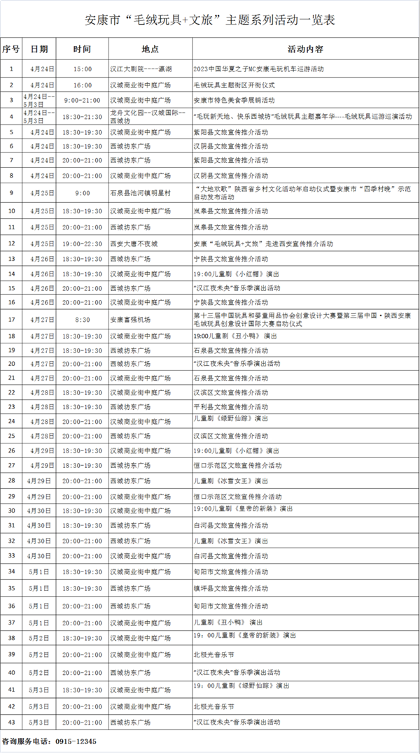 安康市“毛絨玩具+文旅”主題系列活動(dòng)一覽表