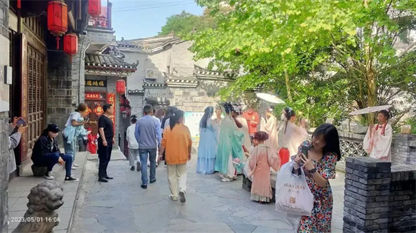 蜀河古鎮(zhèn)景區(qū)迎來(lái)客流高峰,僅假期前三天,單日接待游客超六千人。在景區(qū)各集散地,文旅中心為廣大來(lái)蜀游客提供志愿講解、旅游咨詢服務(wù);同時(shí),中心開(kāi)放一樓大廳,為游客提供座椅茶水,避暑休憩及開(kāi)放廁所服務(wù),全力提升游客游覽體驗(yàn),營(yíng)造舒心旅游環(huán)境。中心協(xié)助蜀河鎮(zhèn)開(kāi)展的“穿越千年古鎮(zhèn) 暢游詩(shī)意蜀河”系列文化活動(dòng)更是精彩紛呈,樂(lè)趣不斷,讓游客體驗(yàn)千年古鎮(zhèn)的文化魅力。