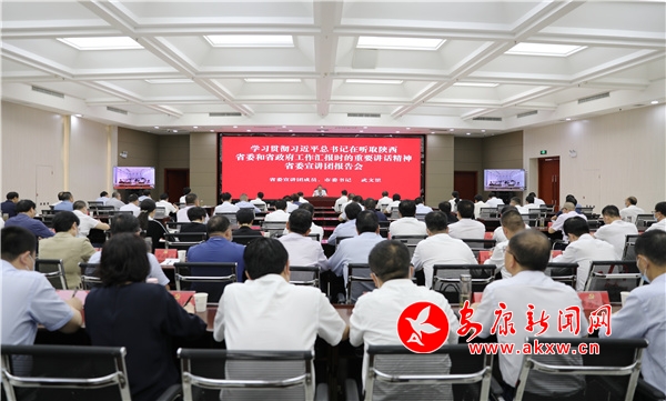 武文罡指出,習(xí)近平總書記的重要講話為陜西發(fā)展問診把脈、定盤把向,賦予新的使命新的任務(wù)、指出工作重點(diǎn)發(fā)力重點(diǎn)、教授思想方法工作方法,蘊(yùn)含著堅(jiān)定正確的政治方向、與時(shí)俱進(jìn)的理論品質(zhì)、至純至厚的人民情懷、自我革命的內(nèi)在要求,彰顯了習(xí)近平新時(shí)代中國(guó)特色社會(huì)主義思想的真理力量,為我們奮進(jìn)新征程、譜寫新篇章提供了根本遵循、注入了強(qiáng)勁動(dòng)力。要深刻領(lǐng)會(huì)習(xí)近平總書記對(duì)陜西工作的肯定勉勵(lì),堅(jiān)定自覺用習(xí)近平總書記重要講話統(tǒng)一思想、統(tǒng)攬全局、統(tǒng)領(lǐng)工作,以勇立潮頭、爭(zhēng)當(dāng)時(shí)代弄潮兒的志向和氣魄,始終不渝沿著習(xí)近平總書記指引方向奮勇前進(jìn)。要深刻領(lǐng)會(huì)習(xí)近平總書記對(duì)陜西人民的關(guān)懷厚愛,把感恩之情轉(zhuǎn)化為牢記囑托、接續(xù)奮斗的高度自覺,轉(zhuǎn)化為攻堅(jiān)克難、推動(dòng)發(fā)展的強(qiáng)大動(dòng)力,堅(jiān)定不移緊跟偉大復(fù)興領(lǐng)航人踔厲篤行,以實(shí)際行動(dòng)堅(jiān)定擁護(hù)“兩個(gè)確立”、堅(jiān)決做到“兩個(gè)維護(hù)”。