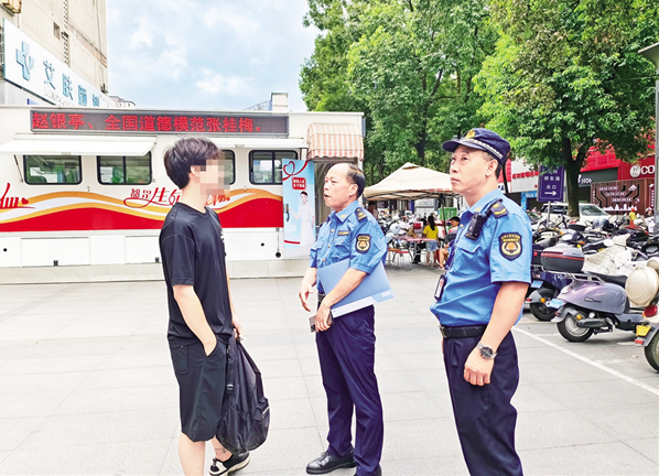 7月26日上午9時,安康市城市管理執(zhí)法局漢濱分局執(zhí)法人員沿金州路巡查至南方百貨門前廣場時,發(fā)現(xiàn)一名年輕男子很隨意地往地上吐了一口痰,隨即準備離開。