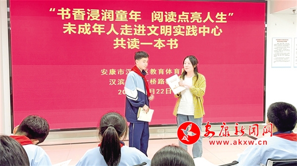 4月22日,漢濱初中大橋路校區(qū)學(xué)生走進漢濱區(qū)新時代文明實踐中心,開展“書香浸潤童年,閱讀點亮人生”共讀一本書活動。吳亞君 攝