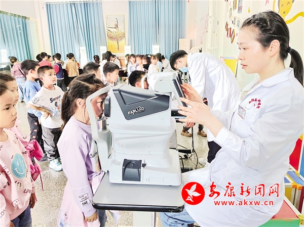 4月17日,漢陰縣婦幼保健院到蒲溪鎮(zhèn)小學(xué)教育集團(tuán)開展學(xué)生視力檢測(cè)。 鄧永新 攝Uhh安康新聞網(wǎng)