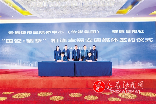 △安康日?qǐng)?bào)社與景德鎮(zhèn)市融媒體中心(傳媒集團(tuán))舉行“國(guó)瓷·硒茶”相逢幸福安康媒體簽約儀式