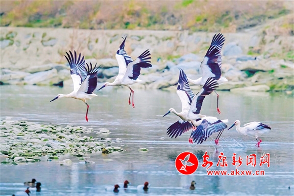 國家一級保護動物 東方白鸛 薛勤學(xué) 攝SCu安康新聞網(wǎng)