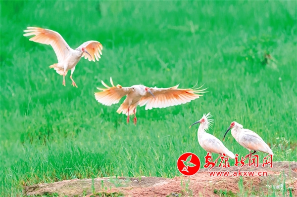 國家一級保護動物 朱鹮 薛勤學(xué) 攝SCu安康新聞網(wǎng)