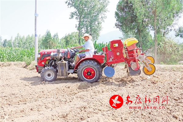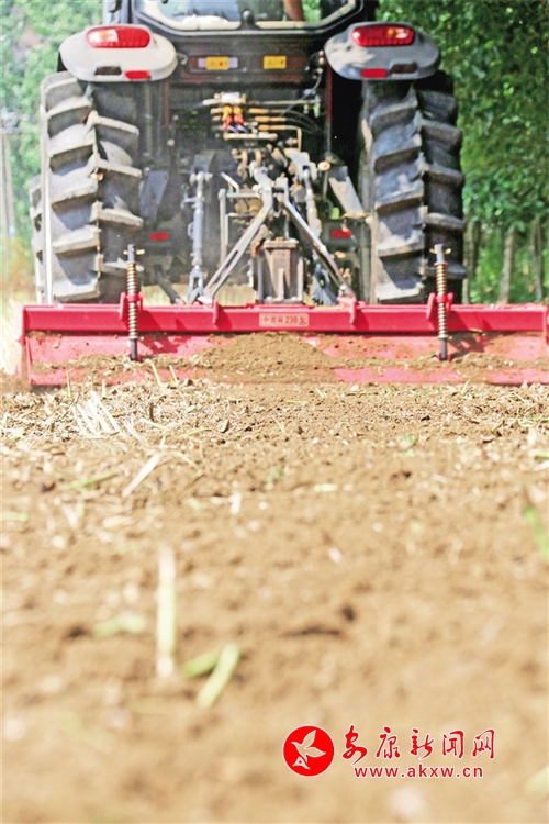 5月27日,隨著旋耕機(jī)的刀片“鉆”進(jìn)土地里,機(jī)器走過后,剛剛收割的地面變得平坦松軟,記者在漢陰縣蒲溪鎮(zhèn)公星村3組看到,趁著晴好天氣,當(dāng)?shù)卣M織農(nóng)用機(jī)械對(duì)土地進(jìn)行翻耕和播種,以便在秋收中再獲豐收。