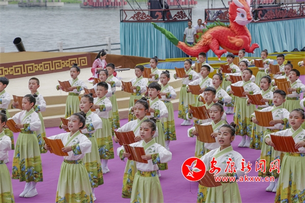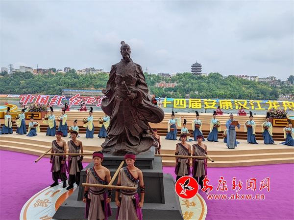 是日,遠(yuǎn)山如黛,近水碧綠,兩岸觀者如潮。“恭請先賢。”隨著主祭官洪亮的聲音響起,屈原雕像被緩緩護(hù)送到舞臺中央。百名童子,手持竹簡,齊聲詠頌祭文。緊接著,身著青綠漢服女子,一列走向江邊把竹籃里面的粽子拋入江中,追念先賢,另一列繞場為觀眾贈發(fā)香包,送上祝福。eCJ安康新聞網(wǎng)