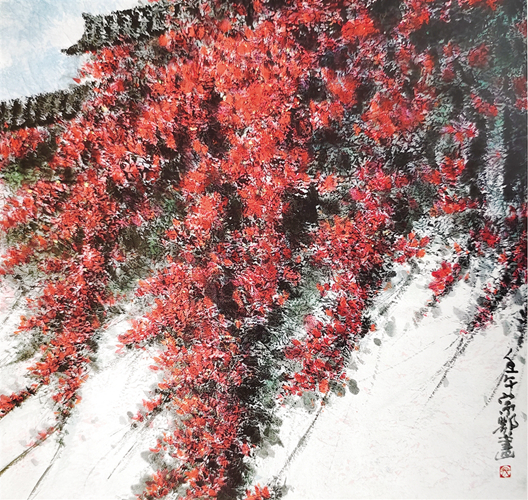 寇宗鄂:由于我的先天不足和后天缺失,讀書雜而不精,僅憑悟性和直覺對待藝術(shù)。我學工藝美術(shù),需要運用多種表現(xiàn)手法,包括進口材料及吸取西畫的造型與色彩。有段時期批判封資修,停止古畫的臨摹復制。我多數(shù)時間是辦展覽或去工廠、農(nóng)村及部隊,繪制毛主席像和韶山、井岡山風景,全都是油畫。因而具備了中西結(jié)合的基礎(chǔ)。幾次出訪對現(xiàn)代藝術(shù)的了解,進一步激活了我創(chuàng)新求變的意識。