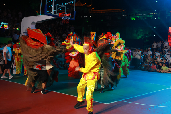8月27日,賽事已經(jīng)連續(xù)激戰(zhàn)了12個(gè)日夜,每一場比賽都讓觀眾們大飽眼福。晚9時(shí)左右,隨著第一場比賽的終場哨聲響起,整個(gè)廣場的氛圍并沒有因?yàn)楸荣惖慕Y(jié)束而冷卻,反而因?yàn)榻酉聛淼木使?jié)目而更加熱烈起來!赌蠈m雄獅》作為中場休息的特別節(jié)目火熱上演。隨著激昂的鼓點(diǎn)響起,兩只色彩鮮艷、造型威猛的雄獅在舞獅者的操控下,瞬間吸引了所有人的目光。它們時(shí)而翻騰跳躍,展現(xiàn)出驚人的靈活與力量;時(shí)而憨態(tài)可掬,逗得觀眾捧腹大笑。舞獅者們更是憑借高超的技藝和默契的配合,將雄獅的威猛與靈動(dòng)演繹得淋漓盡致。