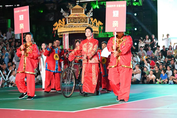 每晚7時(shí),嵐皋廣場燈火輝煌,人聲鼎沸,各方游客、群眾集聚于此。來自川陜鄂渝蘇5省市的78支籃球隊(duì)每天輪番上演賽事,每一次精準(zhǔn)的投籃、激烈的對抗都引來觀眾陣陣喝彩,場上的激烈競爭與場下的熱鬧氛圍相互呼應(yīng),構(gòu)成了一幅生動(dòng)而充滿活力的畫卷。中場休息時(shí),舞臺上的表演同樣精彩紛呈,明星歌手的獻(xiàn)唱、本土歌舞、傳統(tǒng)民俗文化、漢調(diào)二黃……形式各樣的節(jié)目與賽事相得益彰,共同構(gòu)成了這場盛大賽事中不可或缺的一部分,讓每一位參與者都留下了難忘的記憶。