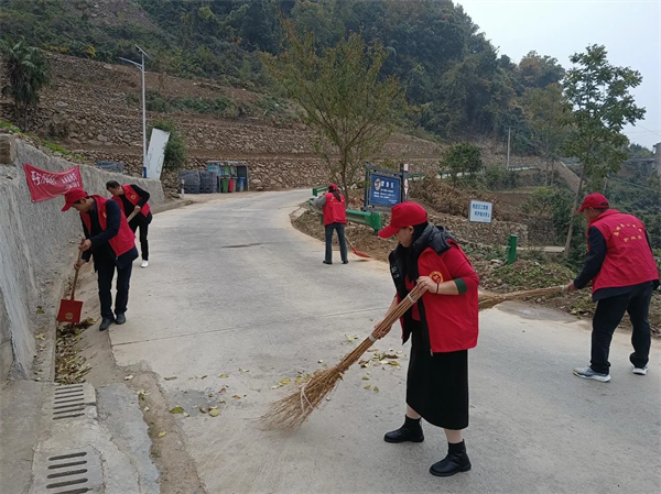 瀛湖鎮(zhèn)王巖村黨員干部、公益崗人員對(duì)主干道路進(jìn)行清掃