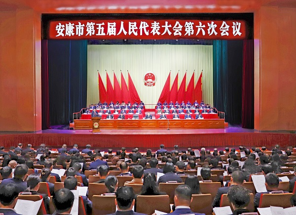 △2月9日上午,安康市第五屆人民代表大會(huì)第六次會(huì)議在漢江大劇院開幕。記者 艾蓓 攝