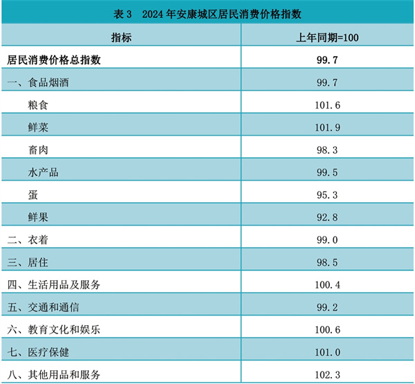 2024年,安康城區(qū)居民消費價格比上年下降0.3%。