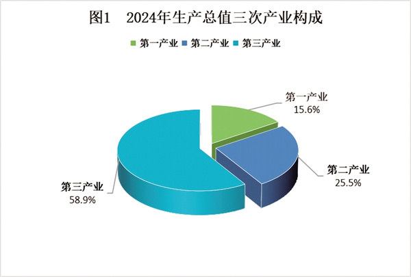 初步核算,全年生產總值比上年增長6.0%。其中,第一產業(yè)增加值增長3.1%,占生產總值的比重為15.6%;第二產業(yè)增加值增長10.4%,占比25.5%;第三產業(yè)增加值增長4.9%,占比58.9%。人均生產總值比上年增長6.4%。全年民營經濟增加值占生產總值的60.0%。
