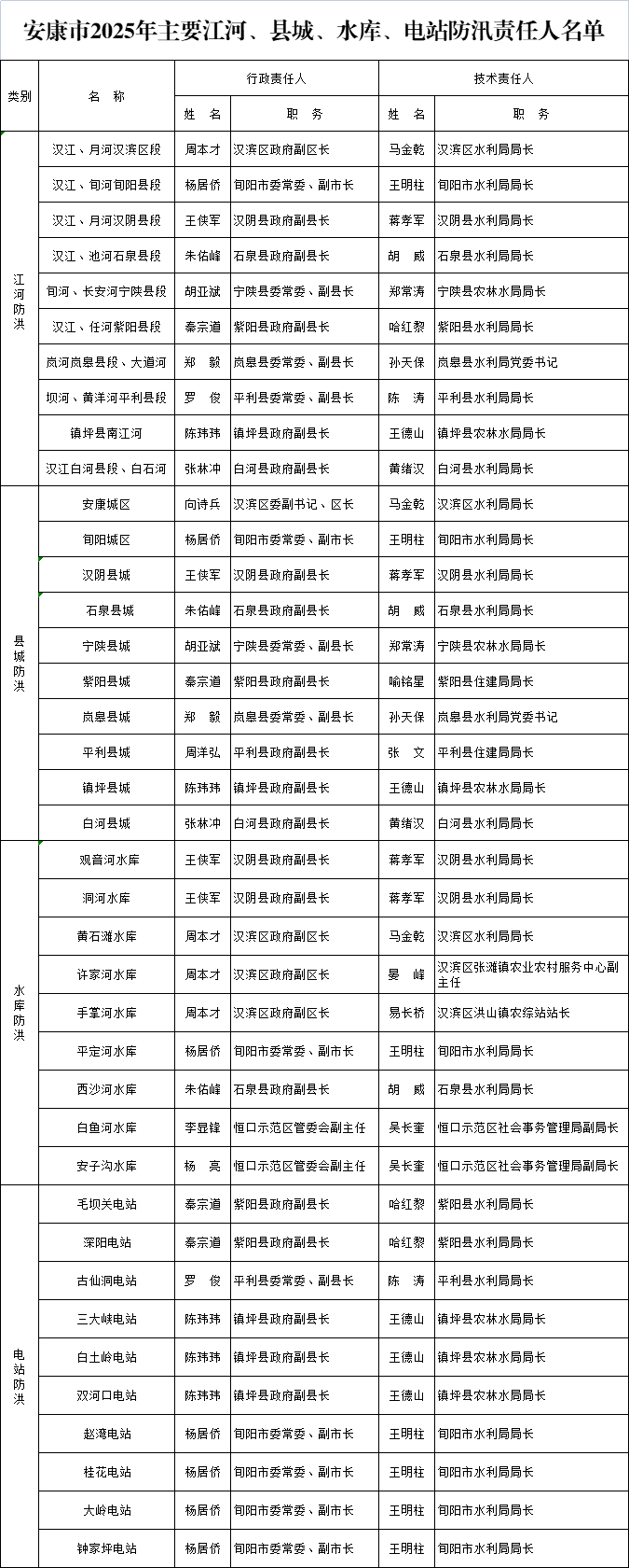 附件:安康市2025年主要江河、縣城、水庫、電站防汛責(zé)任人名單C2A安康新聞網(wǎng)