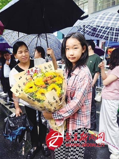 fed安康新聞網(wǎng) 6月7日上午,安康中學(xué)考點(diǎn)外妹妹正手捧鮮花等待完成第一場(chǎng)考試的姐姐。 鄭時(shí)根 攝fed安康新聞網(wǎng)