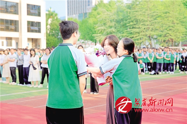 開幕式上,班主任走過紅毯,學(xué)生紛紛遞上手中的鮮花。2RY安康新聞網(wǎng)