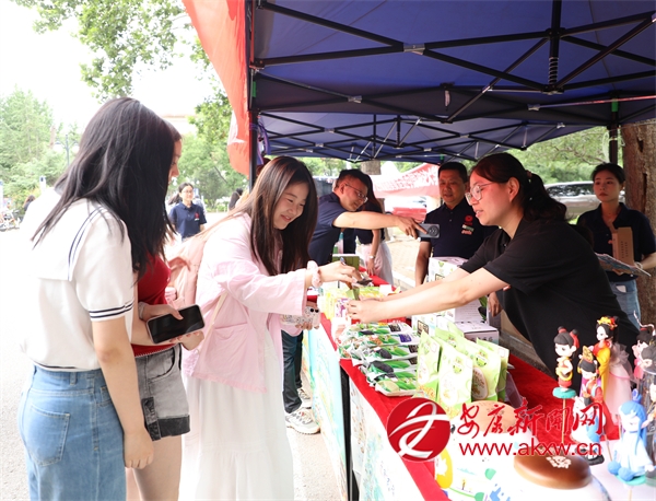 在中國政法大學(xué),現(xiàn)場展銷的炕炕饃、臘肉干、魔芋干、蜂蜜琥珀核桃等即食食品,在學(xué)生食堂現(xiàn)場制作的紅薯粉條炒肉末、安康蒸面、墨魚湯等菜肴以及景區(qū)優(yōu)惠券、文創(chuàng)手作等吸引著眾多師生了解品嘗點(diǎn)贊。