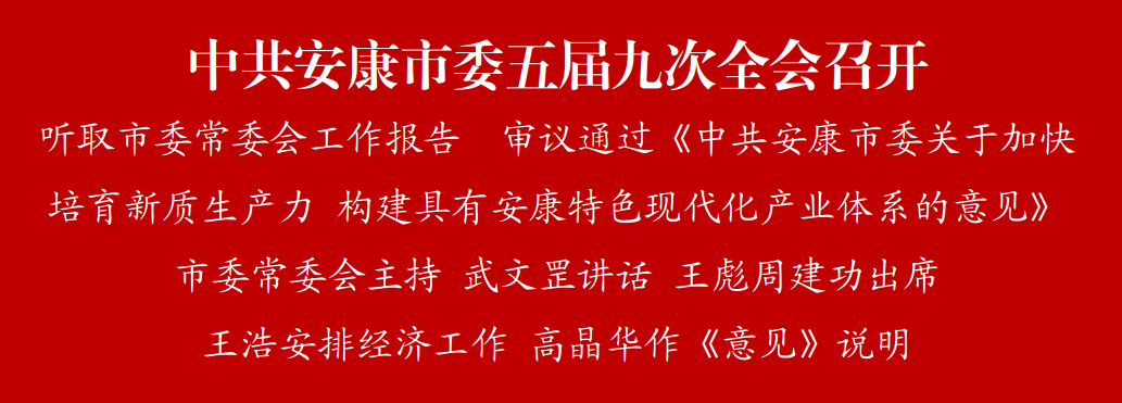 全會以習(xí)近平新時代中國特色社會主義思想為指導(dǎo),深入學(xué)習(xí)貫徹黨的二十大和二十屆二中、三中全會精神,貫通落實習(xí)近平總書記歷次來陜考察重要講話重要指示,全面落實省委十四屆八次全會部署,聽取市委常委會工作報告,審議通過《中共安康市委關(guān)于加快培育新質(zhì)生產(chǎn)力 構(gòu)建具有安康特色現(xiàn)代化產(chǎn)業(yè)體系的意見》,安排下半年重點任務(wù),達到了統(tǒng)一思想認識、凝聚奮進力量的目的。