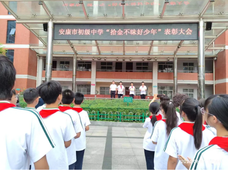 6月17日上午,安康市初級中學(xué)舉行了一場表彰大會。表彰我校初一四班景永強(qiáng)、汪正男、馬崇偉三位同學(xué)拾金不昧的行為,并為其頒發(fā)獎狀,引導(dǎo)全校師生學(xué)習(xí)這種拾金不昧的優(yōu)良品質(zhì),將傳統(tǒng)美德內(nèi)化于心,外化于行。