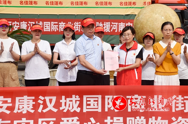 本網(wǎng)訊 8月4日9時,一場馳援河南的愛心捐贈儀式在安康漢城國際商業(yè)街舉辦,安康市紅十字會、市工商聯(lián)、市應(yīng)急管理局、陜西安康博泰投資有限公司領(lǐng)導(dǎo)及漢城國際商業(yè)街商戶、員工代表共同見證了物資、資金移交過程。psY安康新聞網(wǎng)