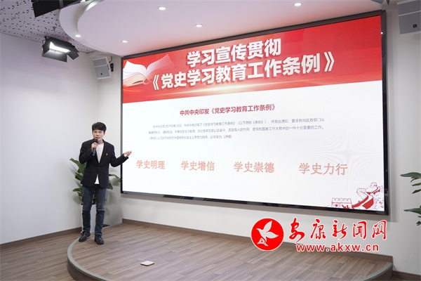 活動中,市委黨校青年教師分享《中國共產(chǎn)黨陜西安康歷史》第一卷(1921-1950),講述新民主主義革命時期的安康黨史,通過情景演繹再現(xiàn)安康紅色革命歷史中的英雄人物,從紅色文化遺存、革命先輩感人事跡中闡釋中國共產(chǎn)黨初心使命,引人深思、催人奮進。