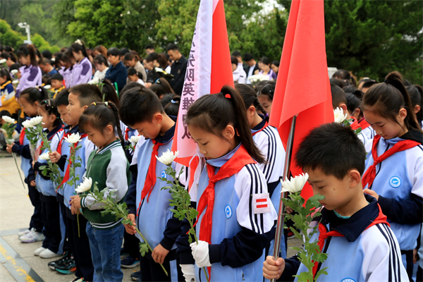 全體師生列隊紀(jì)念碑前,為革命先烈獻(xiàn)花默哀。每一個人的心中都在向革命先烈們曾經(jīng)所經(jīng)歷的風(fēng)霜雪雨、艱苦磨難致敬,為他們復(fù)興中華、赴湯蹈火的崇高精神致敬。
