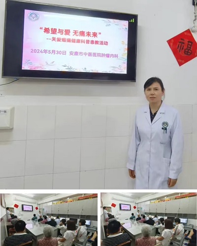 疼痛是人類(lèi)的第五大生命體征,是癌癥患者最常見(jiàn)和最難以忍受的癥狀之一,70%的晚期癌癥患者伴有疼痛。為了更多地普及癌痛知識(shí),造福疼痛患者,2024年5月30日下午市中醫(yī)醫(yī)院內(nèi)科第三黨支部腫瘤內(nèi)科開(kāi)展“黨建引領(lǐng)踐初心 愛(ài)心匯聚暖人心”——“希望與愛(ài) 無(wú)痛未來(lái)”關(guān)愛(ài)癌痛健康宣教活動(dòng)。腫瘤內(nèi)科主任嚴(yán)麗、副主任馬紅兵等醫(yī)護(hù)人員、患者及家屬共30余人參加了此次活動(dòng)。