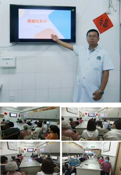 護(hù)士長(zhǎng)馬運(yùn)俠以播放癌痛科普視頻的方式,通過(guò)臨床疼痛案例深入淺出地將癌痛防治知識(shí)分享給大家,現(xiàn)場(chǎng)與患者進(jìn)行了“話(huà)療”,消除他們的緊張情緒,幫助他們樹(shù)立抗擊癌痛的信心,科學(xué)的防癌抗癌,受到患者及家屬的一致好評(píng)。
