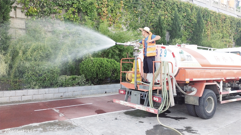 該處采取澆水、松土、修剪措施,黨員干部沖鋒在前,用行動(dòng)詮釋責(zé)任,用奉獻(xiàn)展示擔(dān)當(dāng),用“市政橙”扮靚“城市綠”,抗旱護(hù)綠一線黨旗紅。分區(qū)分段補(bǔ)水,全覆蓋抗旱護(hù)綠。該處采取“分區(qū)域、分時(shí)段、分批次澆灌”方式,對(duì)中心城區(qū)主次干道、公園廣場(chǎng)等公共綠地進(jìn)行抗旱保苗作業(yè)。堅(jiān)持水車澆灌、人工管灌和設(shè)施噴灌等綜合作業(yè)方式,嚴(yán)格落實(shí)“車輛全上、設(shè)備全開、晝夜加班、全力以赴”的工作要求,按照細(xì)澆漫灌、澆足澆透的原則,日均出動(dòng)抗旱澆水人員60余人次、灑水車20余臺(tái)次,應(yīng)澆盡澆,確保162萬(wàn)平方米公園綠地的綠化苗木得到充分補(bǔ)水。松土遮陰保濕,全要素抗旱護(hù)綠。針對(duì)行道樹、灌木帶、草坪及地被植物的不同受旱程度和耐旱能力,加大澆灌頻率,對(duì)易旱和新栽苗木進(jìn)行重點(diǎn)澆灌,并適時(shí)除草、松土、圍堰,防止土壤板結(jié),增進(jìn)土壤蓄水保濕能力;在漢江大橋主橋及北頭轉(zhuǎn)盤等草坪綠地采取自動(dòng)噴灌系統(tǒng)和人工拉管澆灌結(jié)合作業(yè),不留死角盲區(qū),全方位做好抗旱保綠工作,確?购当C缧Ч。錯(cuò)時(shí)錯(cuò)峰養(yǎng)護(hù),全方位抗旱護(hù)綠。錯(cuò)峰作業(yè),錯(cuò)時(shí)澆水,避開城市交通高峰期,避開高溫時(shí)段澆水,減少植物水分蒸發(fā)。同步組織專業(yè)技術(shù)人員對(duì)綠化養(yǎng)護(hù)、夜間澆水等作業(yè)情況進(jìn)行檢查指導(dǎo),發(fā)現(xiàn)問(wèn)題現(xiàn)場(chǎng)立即整改,確保做到抗旱不停步、保綠顯成效。