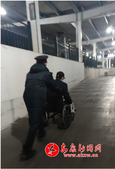 本網訊(通訊員 毛明雪)11月18日,陳先生在西安省城醫(yī)院化療出院后,訂了晚上從西安回至安康的T248次列車12車。在候車廳陳先生病痛難忍,行動不便,無法正常檢票進站。眼看人們紛紛檢票進站了,陳先生十分著急,陪同陳先生的家人抱著試著看的心態(tài)向檢票處的工作人員說明情況,工作人員立刻用對講服務系統(tǒng)為陳先生安排了專職工作人員,工作人員用輪椅推著陳先生經過綠色通道送至12車。